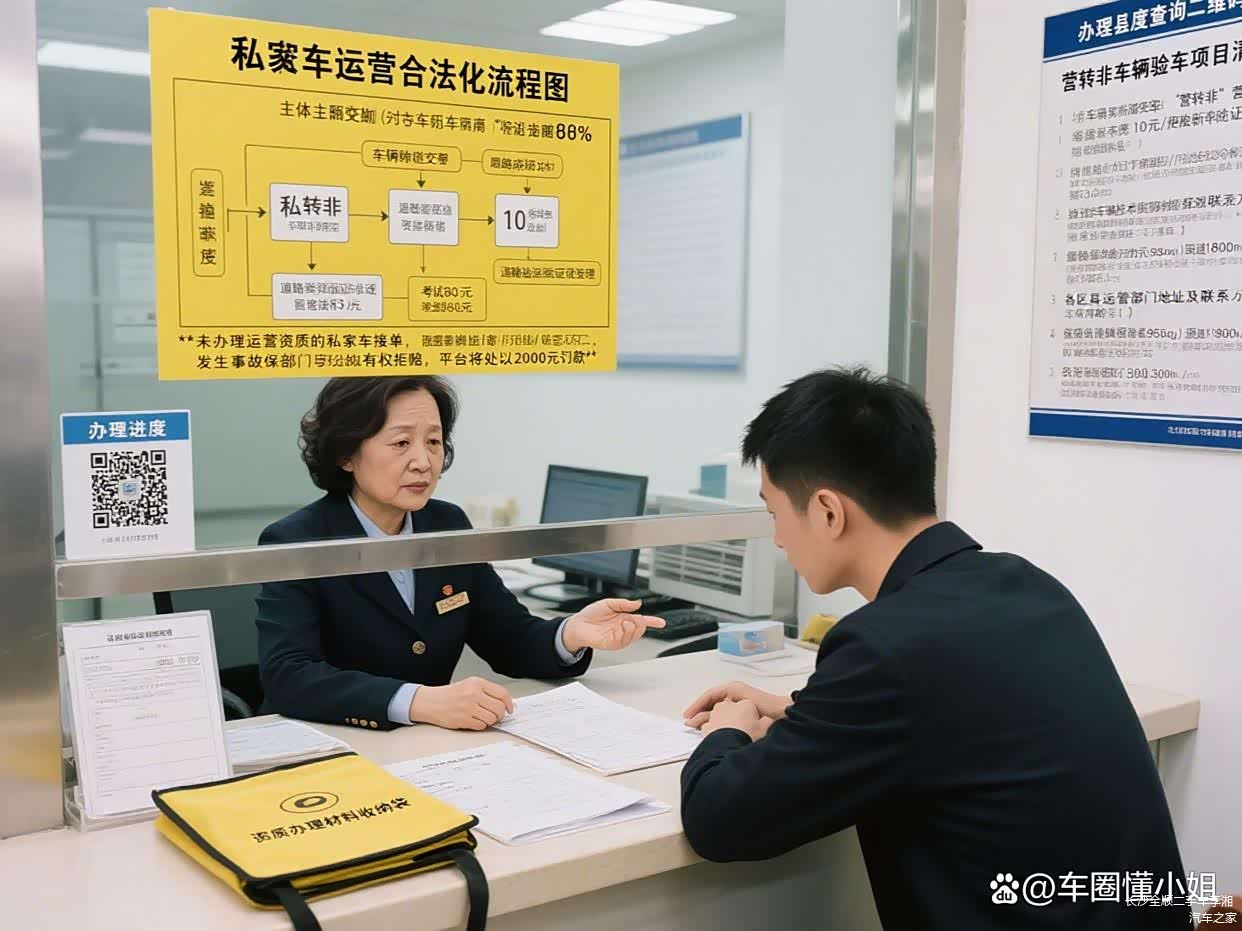 车主需将车辆性质变更为“货运”或“预约出租客运”,这通常需要到车管所办理相关手续。
