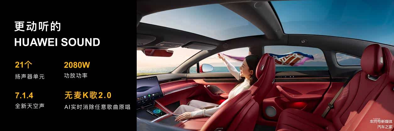 智界新S7的科技配置全面拉满:中控屏搭载最新鸿蒙智能座舱系统,界面简洁、响应迅捷,可与手机、智能家居无缝联动,实现“万物互联”;音频方面首发HUAWEI SOUND 21扬声器系统,2080W功放功率搭配7.1.4天空音技术,让车内秒变“移动音乐厅”。