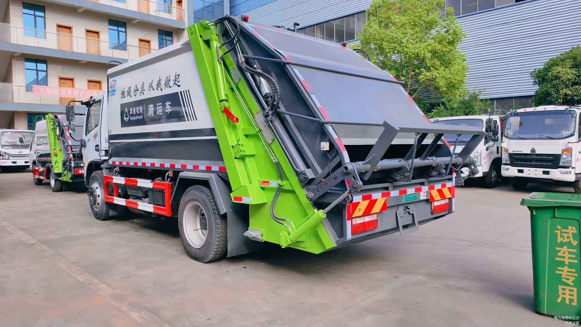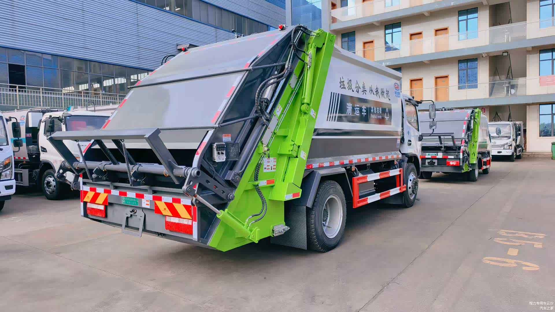 福建客户再次回购的东风多利卡12立方压缩垃圾车发车,采用多利卡D7重载底盘,玉柴165马力发动机,陕齿八档变速箱,3800轴距,825钢丝胎,客户实测装载240升垃圾250桶。