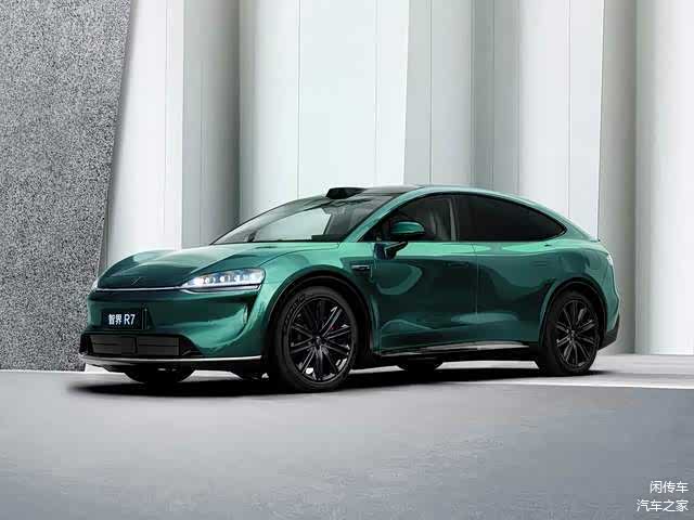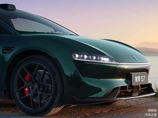 具体来讲还是从智界R7说起,新车对于前脸造型进行了微调,大灯组采用了双层造型,由灯带贯穿中央,镶嵌有新的智界车标,泪沟式进气道处也有修改,整体显得更加的犀利运动。梯形下格栅明显突出,也提升了战斗感。当然其他就是车顶激光雷达,车身侧面流畅的轿跑线条,车尾部分大掀背式尾门,贯穿式尾灯等元素不会变化,新增了全新的车漆,全新的轮毂造型,也提升战斗感,和车头的风格形成对应。