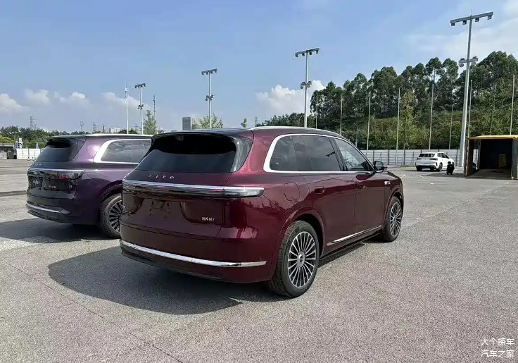 车辆的内部装饰也采纳了最新的家族式设计理念,车内配置了中央悬浮的大型液晶显示屏和主、副驾驶侧的液晶显示屏组成的三屏系统,这与问界M8和M9的操作方式有所不同,展现了其独特的设计风格。除此之外,像Hud抬头显示和星环散射体这样的设计元素也并未缺失。扶手箱的前端区域配备了双杯架、手机的无线充电面板和盖板的储物格。这辆车的内部装饰着木纹般的精美面板,而传统的三幅式圆形方向盘也呈现出一种奢华和科技的氛围。撞色工艺所带来的内部装饰色彩也构成了这款车的标配。