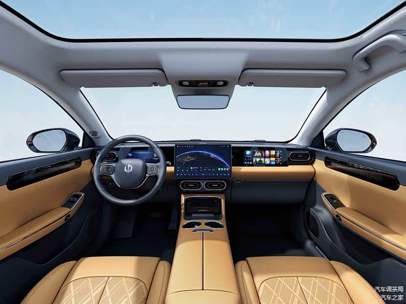 内饰采用礁灰 + 驼绒棕等配色,搭配 Nappa 真皮座椅,前排支持加热、通风,后排带加热功能充分考量道不同季节的乘坐需求,舒适性直接拉满。