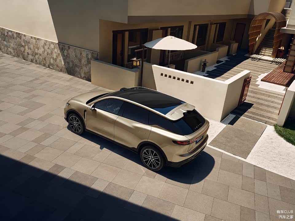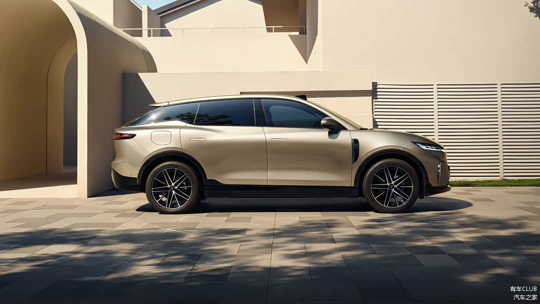 车身侧面采用流线型曲面设计,悬浮式车顶、隐藏式门把手及低风阻轮圈将风阻系数降至最低。C柱的悬浮式设计和“翼梢小翼”元素(灵感源自飞行器)强化动感,后轮拱隆起造型增添力量感。车顶行李架、后视镜及轮眉采用熏黑处理,营造双色车身视觉效果。车型尺寸方面,新车长宽高分别为4810/1900/1636mm,轴距为2925mm,定位中型SUV。
