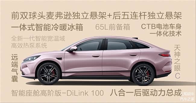 除了云辇型,秦L EV原有款型也实现了价值重塑,价格限时杀入10万级,入门即享:前双球头麦弗逊+后五连杆悬架、后驱布局、CTB电池车身一体化技术、天神之眼C-辅助驾驶三目版(DiPilot 100)和智能座舱高阶版DiLink100。