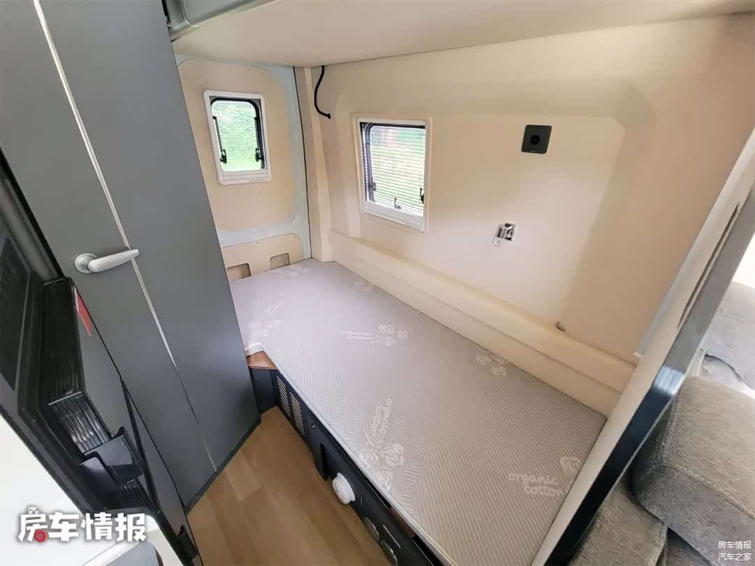睡眠区:灵活上下铺,上铺2000*800mm、下铺1950*900mm(可拓展至1400mm),均可容纳一名成人,下铺也可睡一大一小,布局非常灵活。
