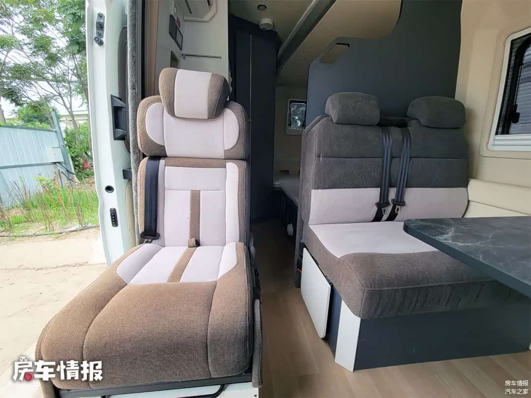 内饰轻奢,两人舒适出行。整车采用灰色系内饰,质感清爽高级。原车主还做了几处非常实用的个性化升级:取消车顶大天窗,加强保温与私密性、侧滑门处改为单人座椅,提升乘坐灵活性、选装布艺座椅(冬不冰夏不粘,更实用)、可以看出,前任车主绝对是个“懂生活的老司机”。