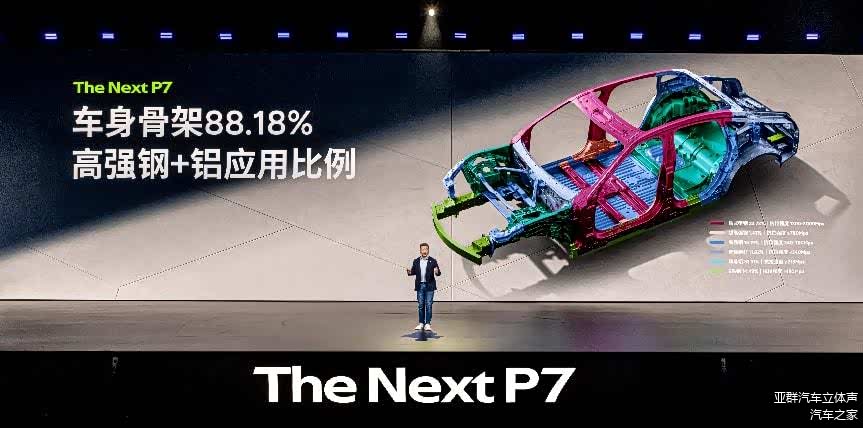 对于汽车而言,安全性始终是核心诉求。全新小鹏 P7 采用 16000T 前后一体铝压铸工艺,大幅提升车身刚性与抗扭性能;同时整车高强度钢和铝的占比高达 88.17%,关键部位、均采用超高强度材料,能在碰撞发生时有效抵御外力冲击,为车内人员打造 “移动安全舱”,同时全车标配 7 个安全气囊,、全方位减少碰撞时的人员伤害。
