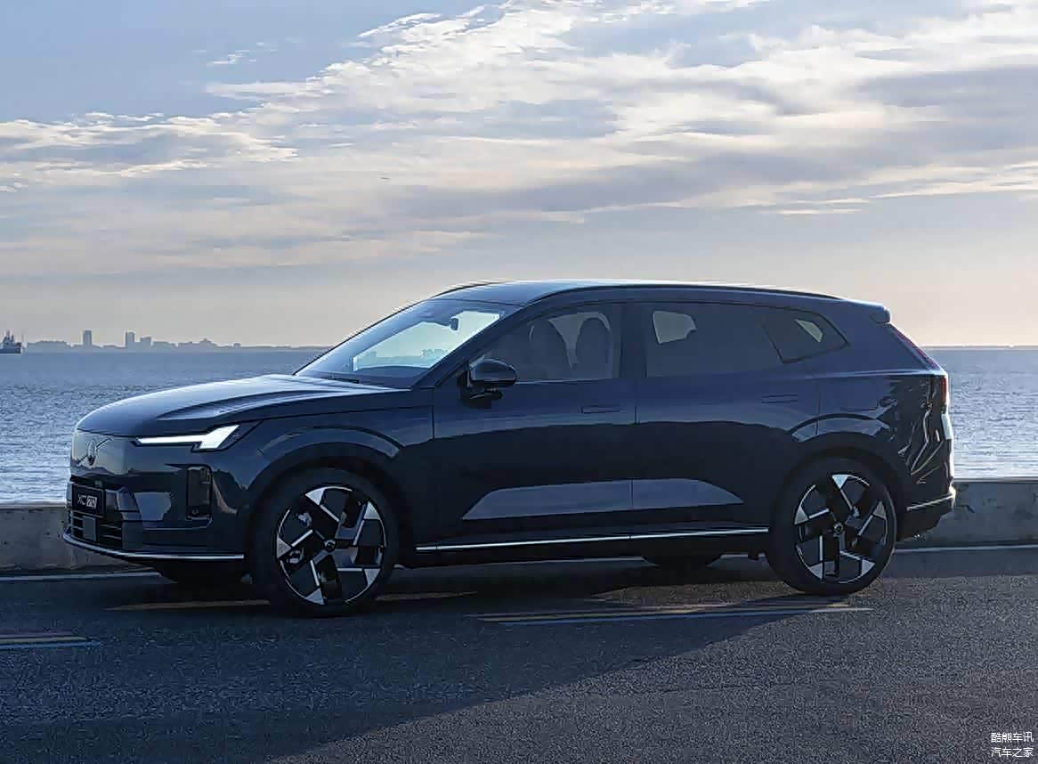 从外观来看,沃尔沃XC70延续了品牌新能源车型的家族化设计语言,并巧妙融入EX90的设计精髓。标志性的“雷神之锤”LED头灯采用矩阵式技术,造型犀利如两把利刃,不仅点亮后辨识度极高,夜间行车时更能提供出色的照明效果,前方路况一目了然。车身侧面,隐藏式门把手设计紧跟潮流,有效降低风阻的同时提升能效;车门下边缘的镀铬装饰条在阳光下闪耀,与黑色外后视镜壳、黑色侧窗饰条形成呼应,营造出精致又不失运动感的氛围。
