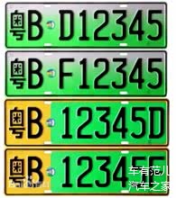 新能源汽车专用号牌:绿底黑字黑框线,新能源汽车号牌为渐变绿色,大型新能源汽车号牌为黄绿双拼色。也被大家誉为最丑的车牌!