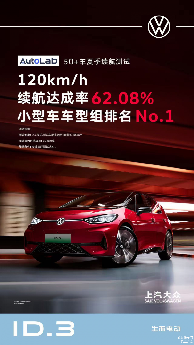 “选纯电车,最怕的就是‘标称 400km,实际跑 200km’”—— 这是很多消费者在选购纯电车型时的顾虑。而上汽大众 ID.3,却用 “日常代步一周一充,高速出行不慌不忙” 的表现,打破了这种顾虑。无论是《新能源极限续航榜》的双冠,还是《50 + 车夏季续航测试》62.08% 的达成率,ID.3 都在用 “实诚” 的续航,重新定义纯电出行的 “安心标准”。