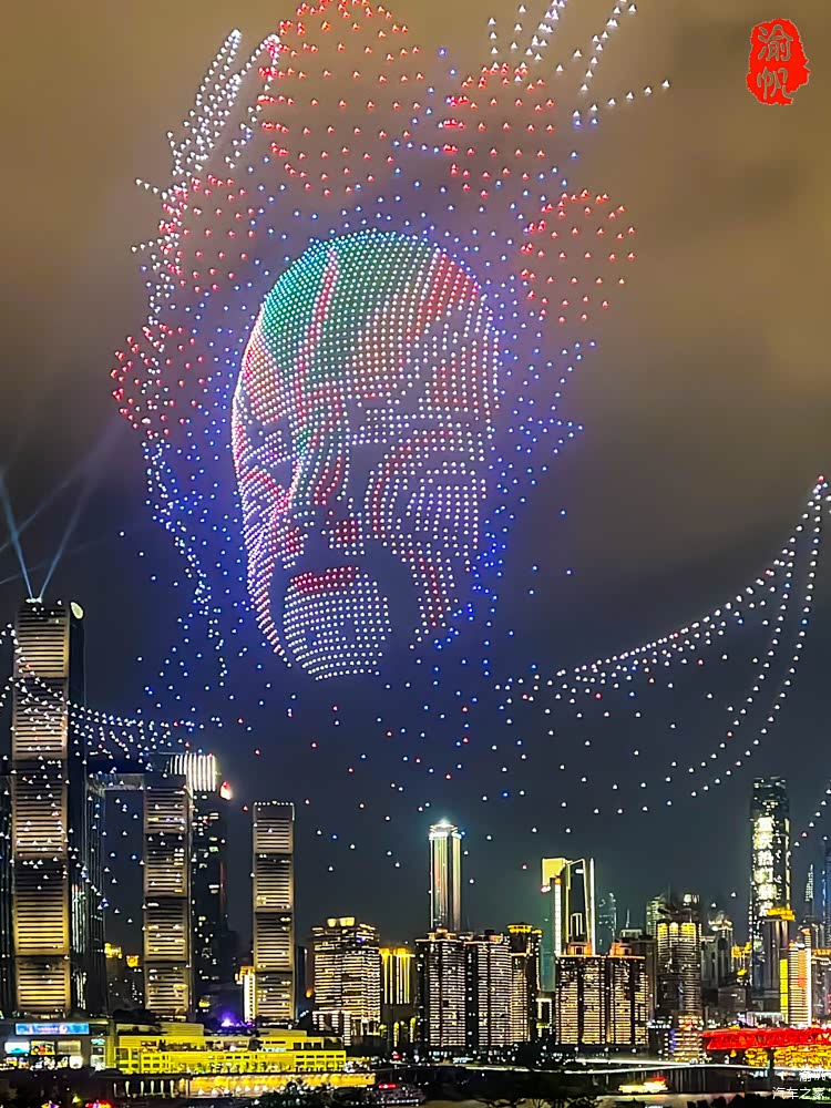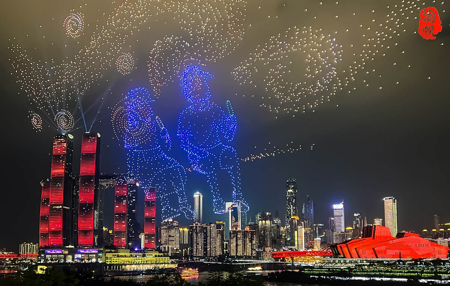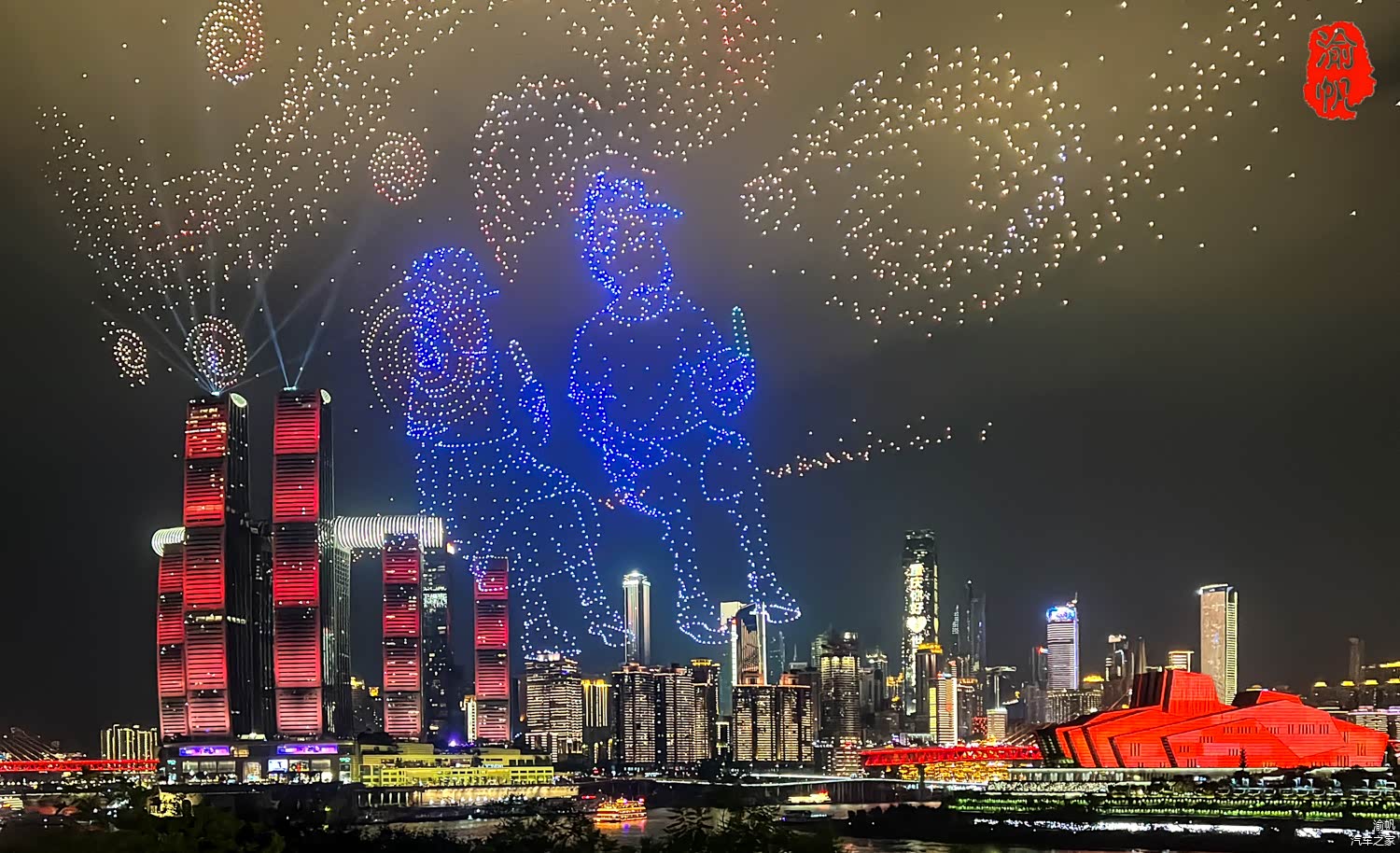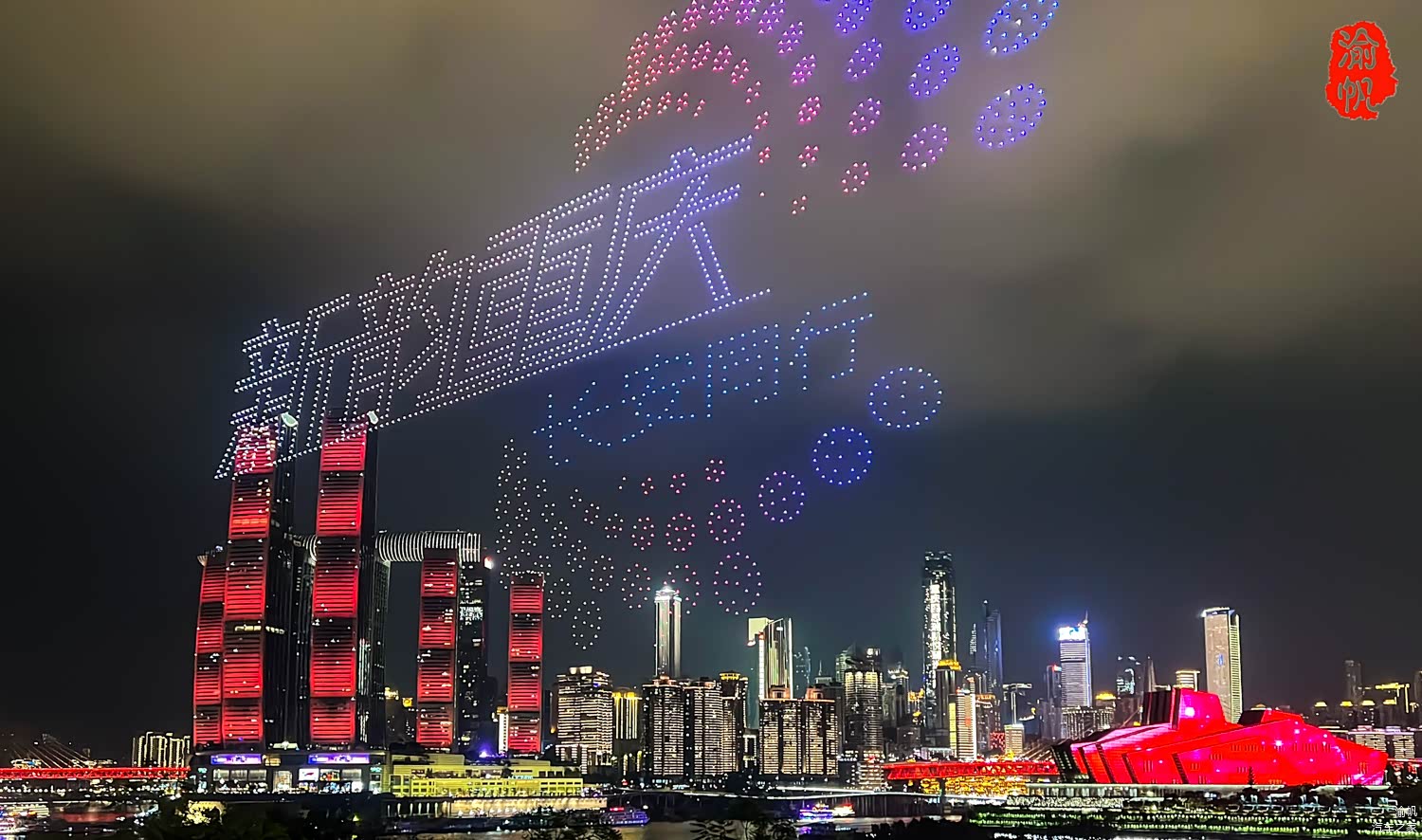 重庆,这座被贴上“8D魔幻”、“赛博朋克”标签的网红城市,以往,人们千里迢迢奔赴而来,多是为一睹洪崖洞那如千与千寻梦幻世界般的夜景,或是惊叹李子坝轻轨穿楼的奇妙景象。但今年,一种全新的城市符号正在长江之畔崛起——每周六晚,成千上万架无人机腾空而起,以天空为画布,以光影为笔墨,在“新韵重庆·光影奇妙夜”的表演中,为山城绘制出一幅幅流动的史诗。