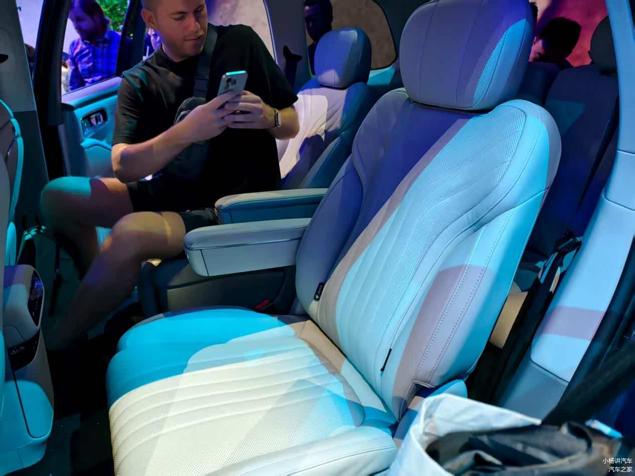 它还能把家用舒适做到极致的细节设计。车内没有一点廉价感,触手可及的地方都是软质包裹。前排双50W风冷无线快充,手机放上去不用等就能快速补电,再也不用扯着充电线。二排的9.1L智能冷暖冰箱特别贴心,夏天能冰可乐,冬天能热牛奶,带孩子出门再也不用怕食物变质。最让人感动的是三排的细节关怀,拥有同级最大150°躺倒角度,配合0.15㎡勃朗峰舷窗,一键调节座椅模式,座座可躺。就算坐在第三排,也没人会觉得被忽视。