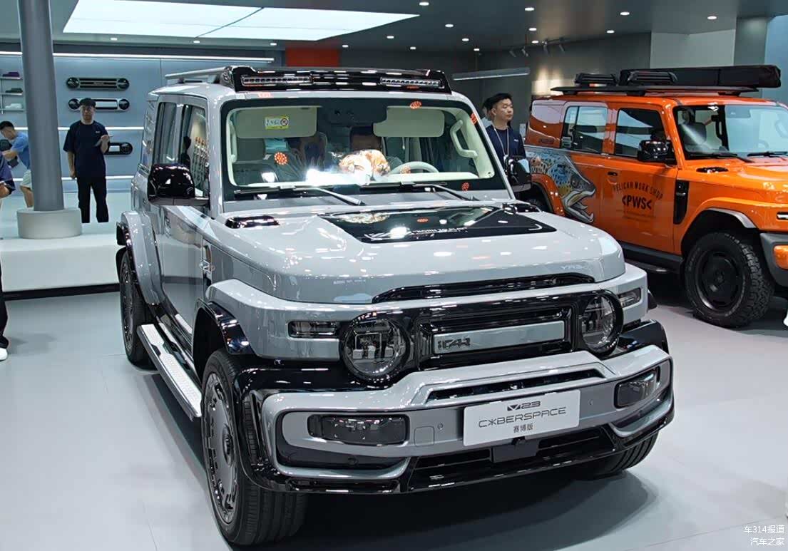 如果你喜欢酷酷的“小方盒”SUV,那么 iCAR V23(图片 | 参数 | 询价)上新的“赛博版”,就值得你注意。主要是车身外观的升级,采用了亚光银车漆,金属质感非常赞;中网格栅、轮眉则是高亮黑色,主打一个反差,而赛博机盖、前后保险杠、车顶LED射灯、车顶行李架、碳纤维扰流板、大饼轮毂等等也都加分不少,整个车子就像是科幻小说里直接拿出来的一样。