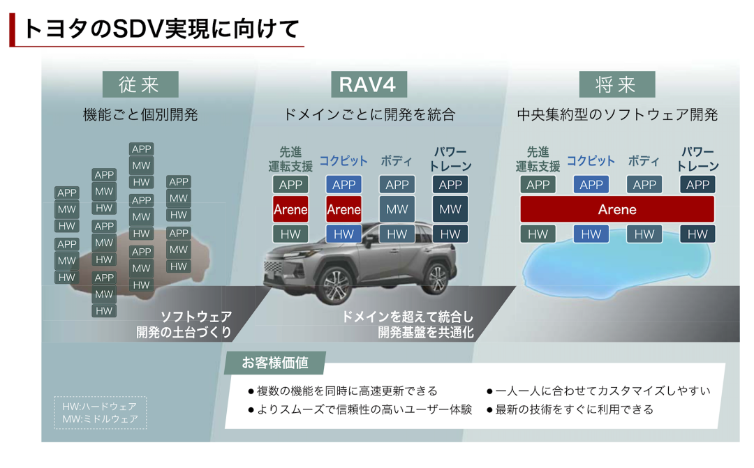 “软件定义汽车”这句口号,在中国汽车市场喊了多年之后,丰田也听进去了,旗下软件公司Woven by Toyota主导研发了全新的汽车软件平台Arene,覆盖ADAS先进驾驶辅助系统、用户交互和智能座舱系统。