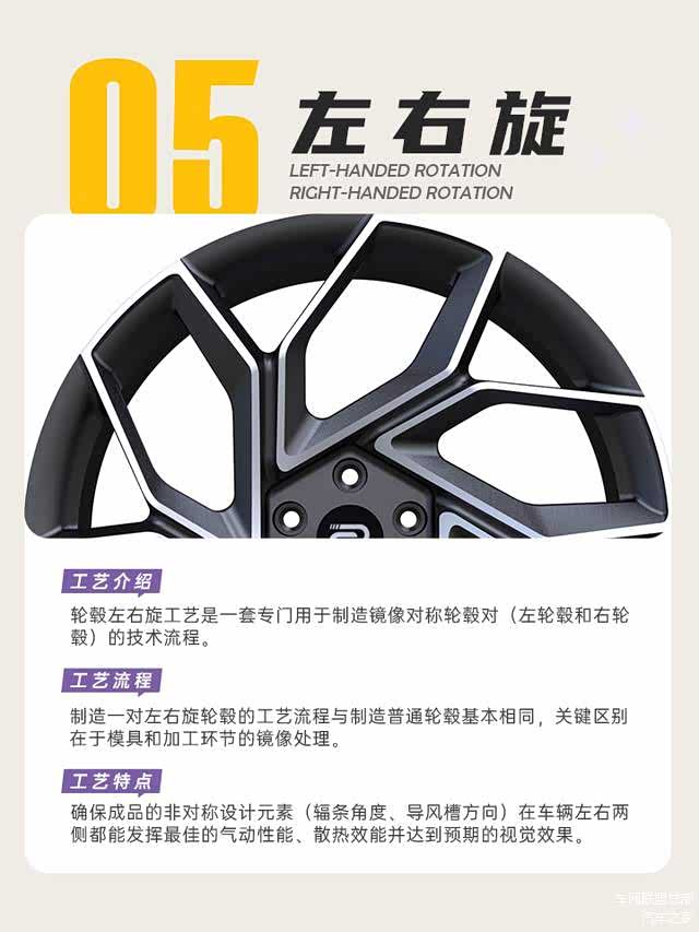 轮毂左右旋工艺是一套专门用于制造镜像对称轮毂对(左轮毂和右轮毂)的技术流程。