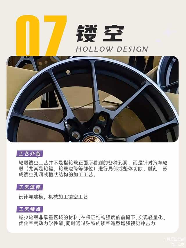 ✅工艺特点:减少轮毂非承重区域的材料,在保证结构强度的前提下,实现轻量化、优化空气动力学性能,同时通过独特的镂空造型增强视觉冲击力,让轮毂更具运动感和个性化。
