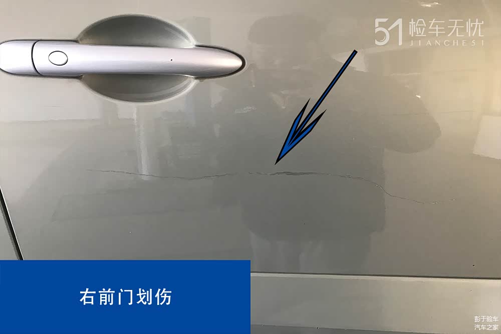 右侧前车门有明显的刮伤,影响美观。