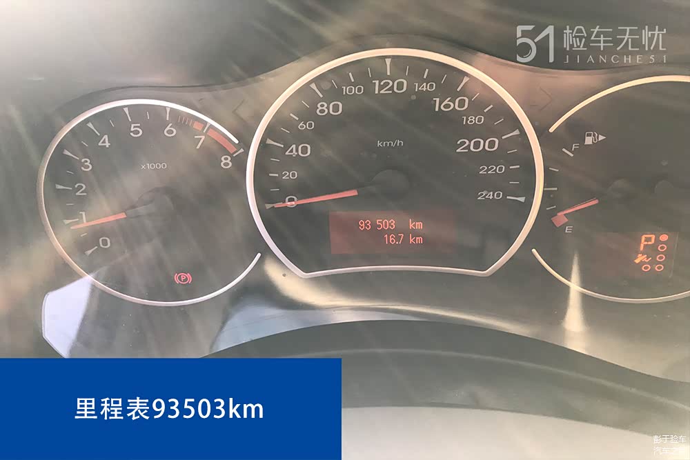 仪表盘上也算是中规中矩。除了了清晰好读,没有什么刺激感。大概是为了控制喜欢飙车的老司机们要注意安全。该车跑里有93503km内饰磨损和仪表盘有点不太相符。但是查了保养记录没有太大的幅度。