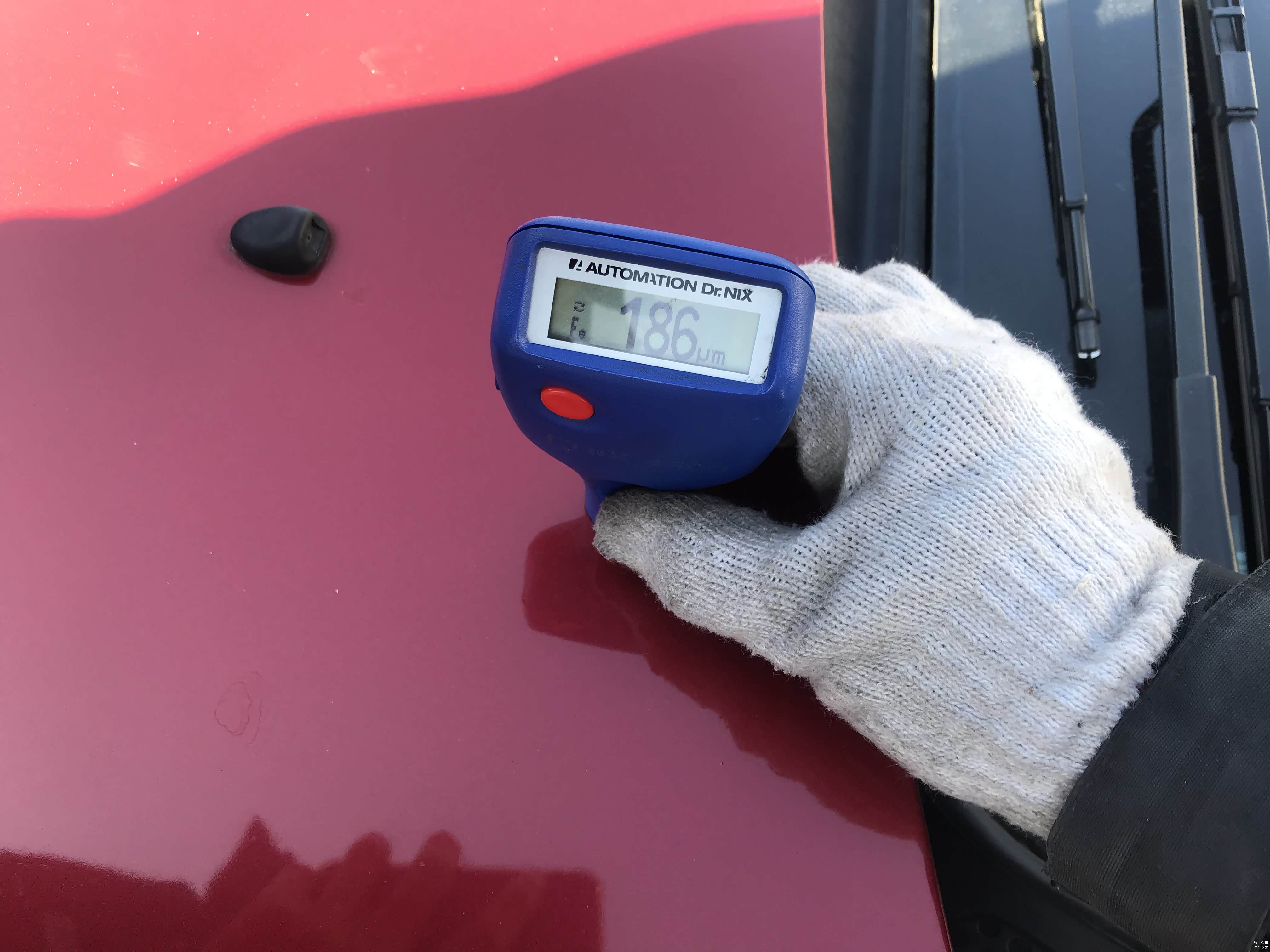 经漆膜仪检测前机盖漆面数值为186um。