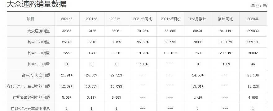 说起大众速腾,作为大众旗下的主力车型之一,在国内A级车市场中的地位还是非常高的,其销量可以证明,从销量数据中可以看出,大众速腾的月销量均在破万以上,在今年3月份更是卖出了32365辆,位居销量榜第五的位置。