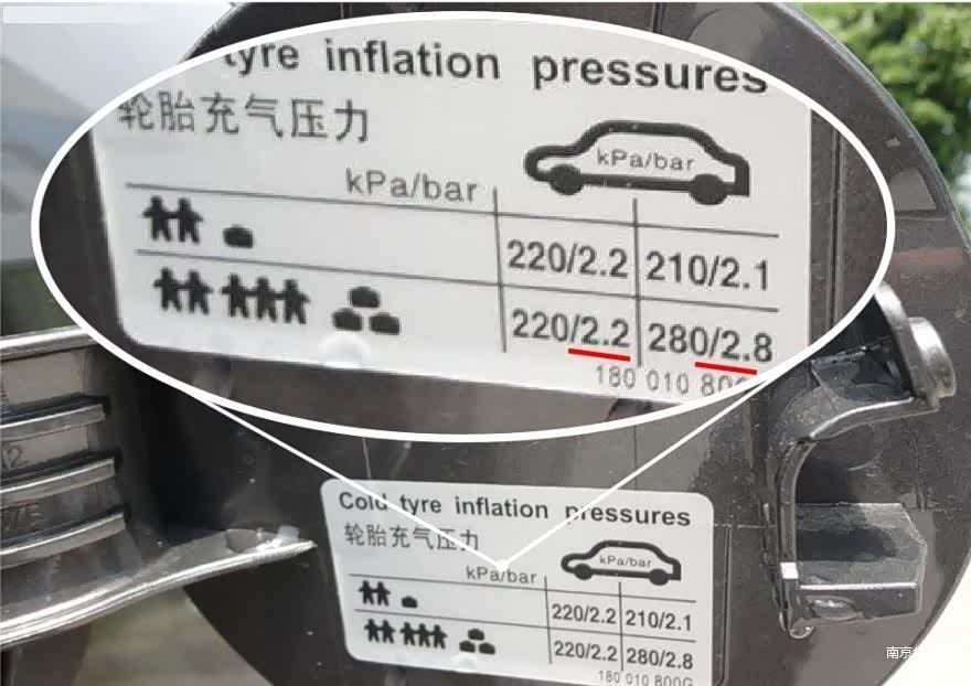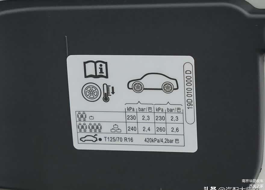 1.查阅官方“胎压地图”: 这是最权威的依据!拉开驾驶侧车门,低头看B柱下沿(通常在门锁扣附近),或者打开油箱盖内侧,你一定能找到一张清晰标注着标准胎压值的标签。请务必优先遵循厂家给出的这个建议值。