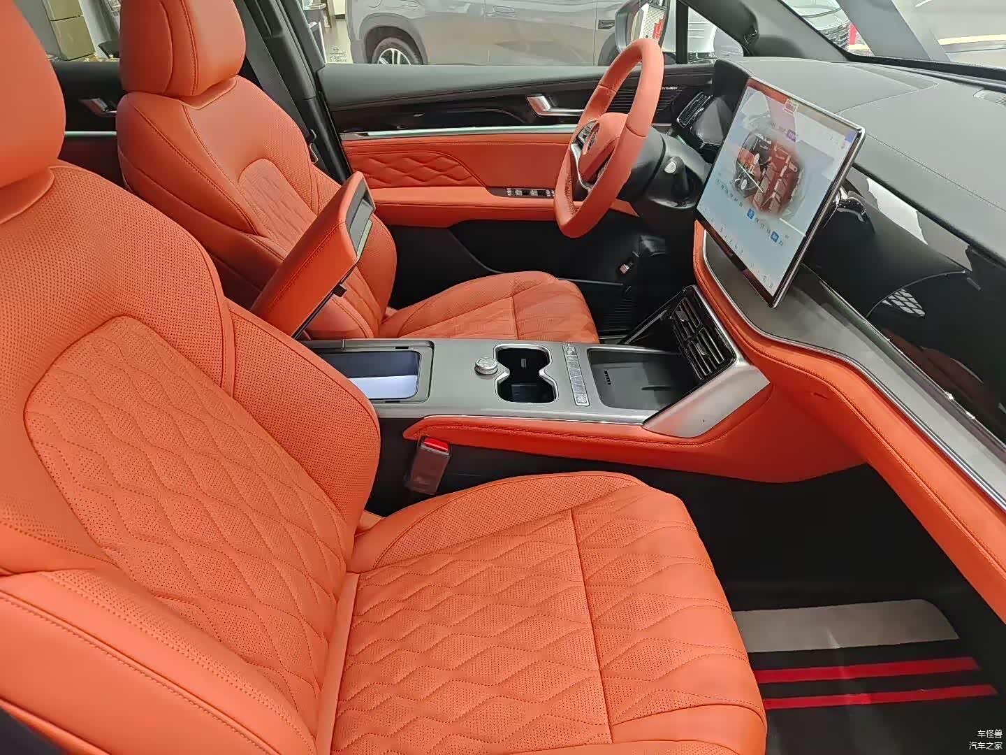 当你步入2026款唐DM-i的车内,你会发现其内饰也展现出了一些新的特色。除了“藕韵灰”之外,还提供了与唐L风格相匹配的“霞绯红”色调,其色彩组合显得非常新颖和独特。该设备配备了电子怀挡和重新设计的副仪表台,还依序搭载了50W的手机无线快充功能、一系列镀铬物理按键、双杯架和智能冷暖冰箱,从而显著提高了其实用性。