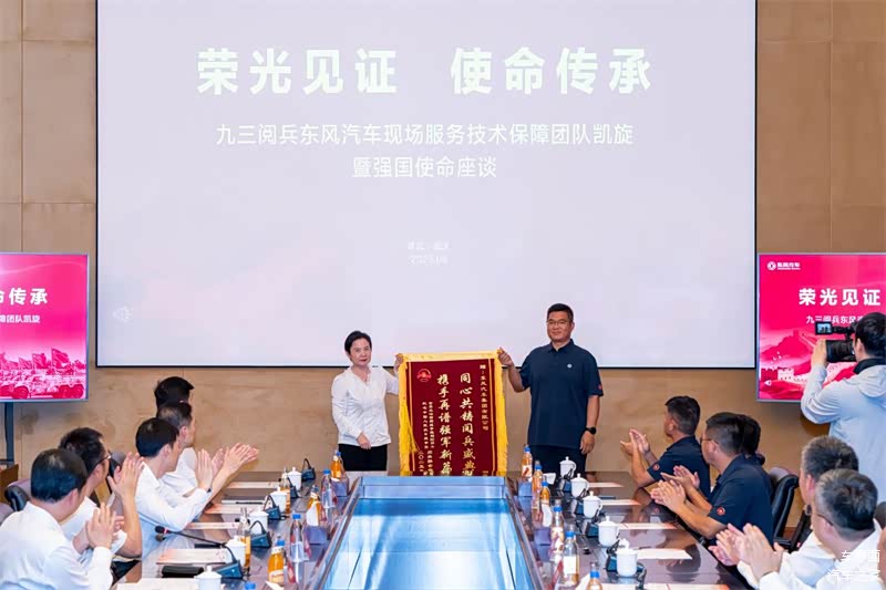 2025年9月7日,东风汽车集团有限公司在武汉隆重举行“荣光见证・使命传承”——九三阅兵东风汽车现场服务技术保障团队凯旋暨强国使命座谈会,热烈欢迎服务技术保障团队荣耀归来。