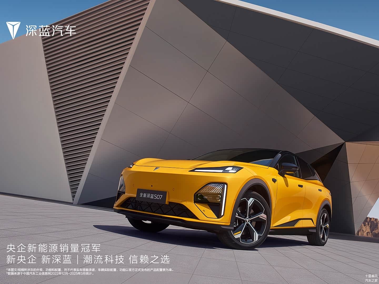 深蓝S07新增“驰光黄”配色,搭配五款车漆和双色车身,满足个性化需求。纯电和增程版车型采用不同前脸设计,配合深蓝之眼日行灯、星翼透镜大灯、星焰贯穿式尾灯及辅助驾驶小蓝灯,整车视觉辨识度和科技感十足。