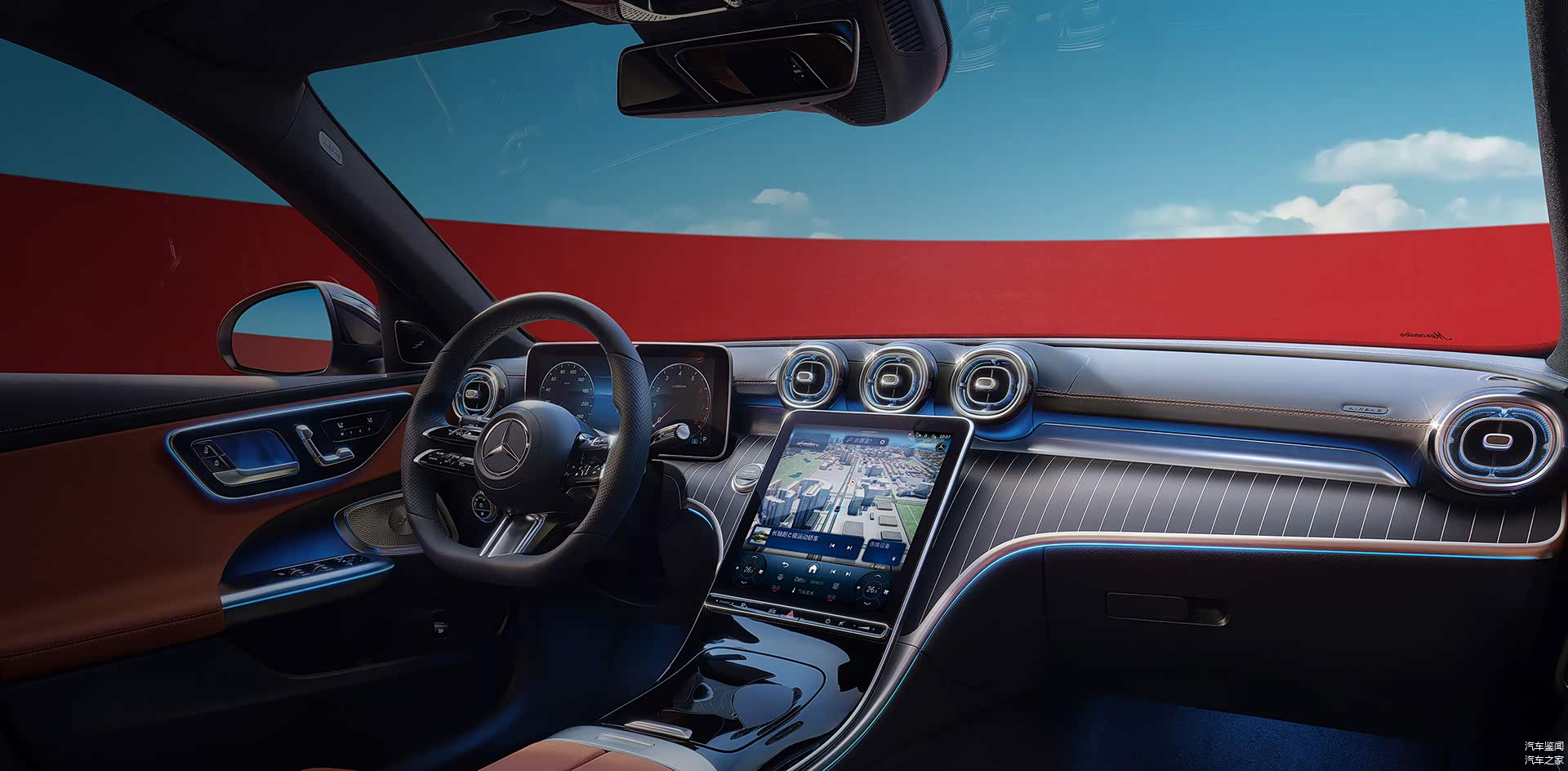 奔驰座舱太漂亮了,当时有位女车友想来辆奔驰A级,理由就是因为“五彩斑斓”的座舱,感觉氛围特别喜欢,所以奔驰C级这方面的表现也不会差。