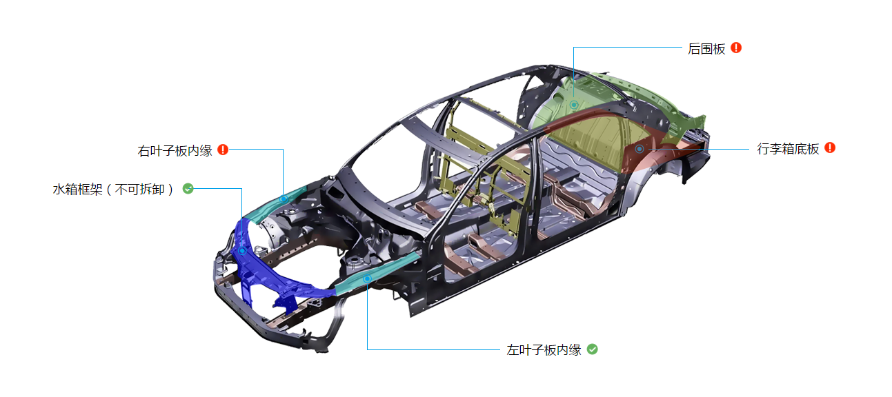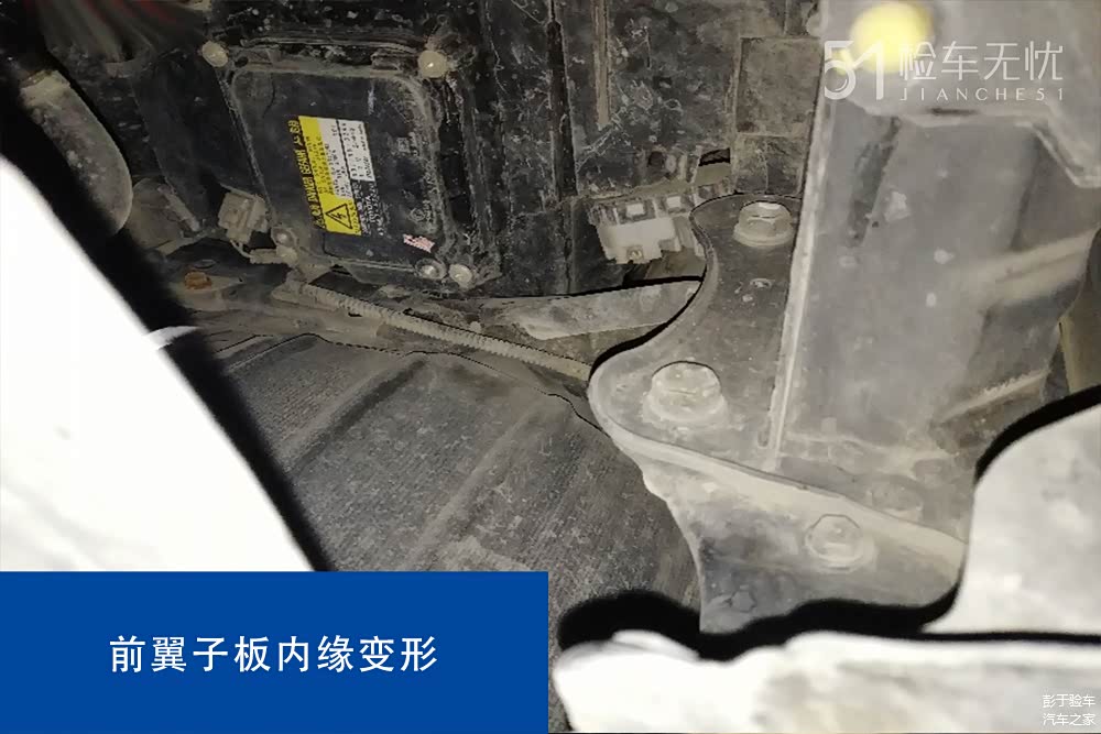 发现右侧翼子板内缘、行李箱底板和后围板有轻微的变形。