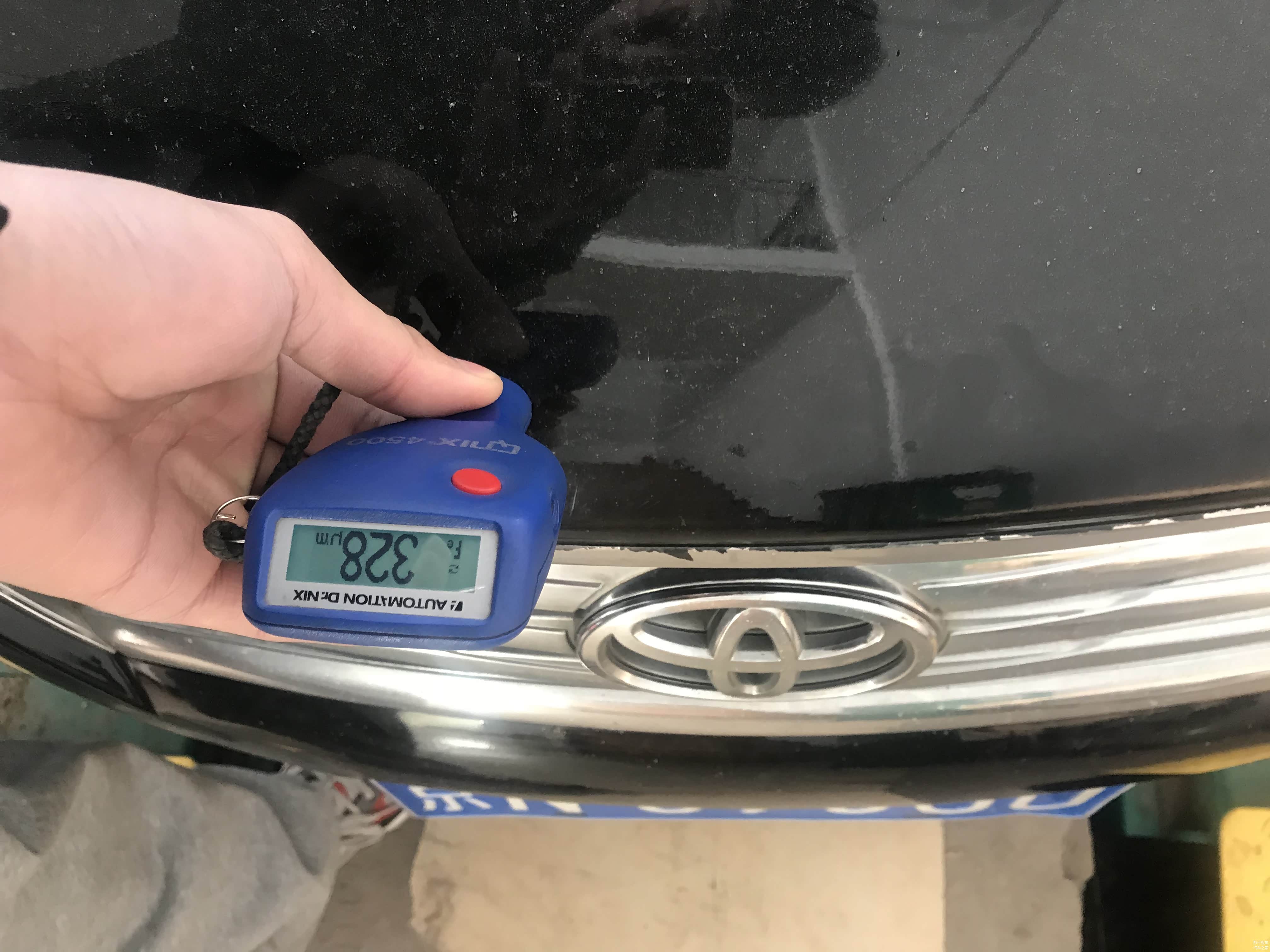 经漆膜仪检测前机盖漆面数值为328um—————补漆