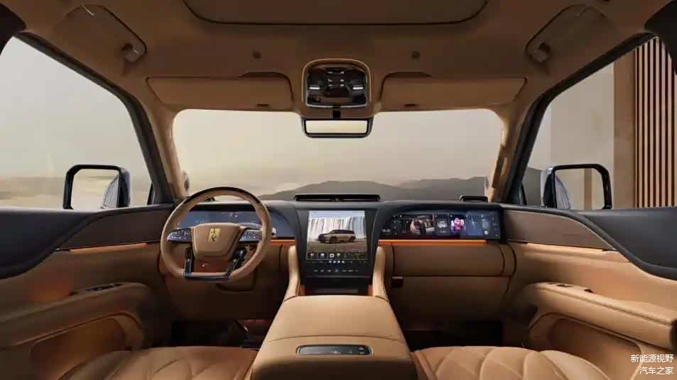 内饰方面,新车内饰延续现款内饰设计,中控台采用23.6英寸全液晶仪表盘,搭配12.8英寸OLED内嵌纵置中控屏+23.6英寸内嵌式副驾驶触控屏+70英寸AR-HUD 抬头显示以及流媒体后视镜的设计布局。