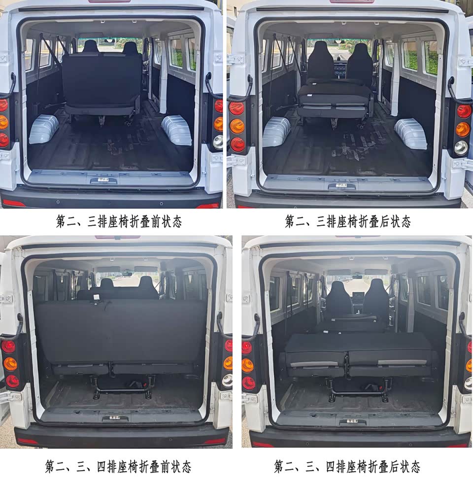 新车会有6座和9座两种座椅配置,6座车型为2+2+2布局,9座为2+2+2+3布局,后部的座椅为固定式,但是靠背能够向前折叠放平。