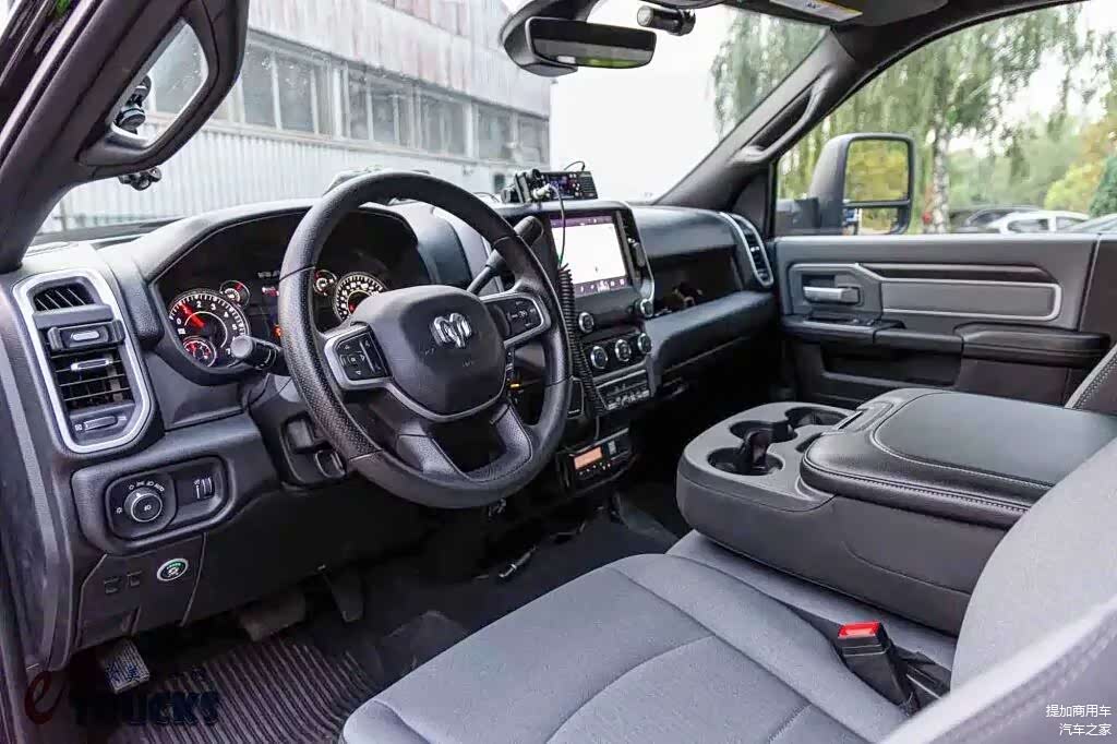 与此同时,RAM 5500采用了长头结构,也就是发动机位于驾驶舱前的结构,这种设计有助于降低整车高度,空载时高度仅为2.07米,这是COE式结构的欧洲卡车很难做到的。除此之外,RAM 5500采用了乘用车上更为常见的油刹系统,而非商用车常用的气刹,这能帮助驾驶员更好操控车辆,避免在混合驾驶工作中造成事故。