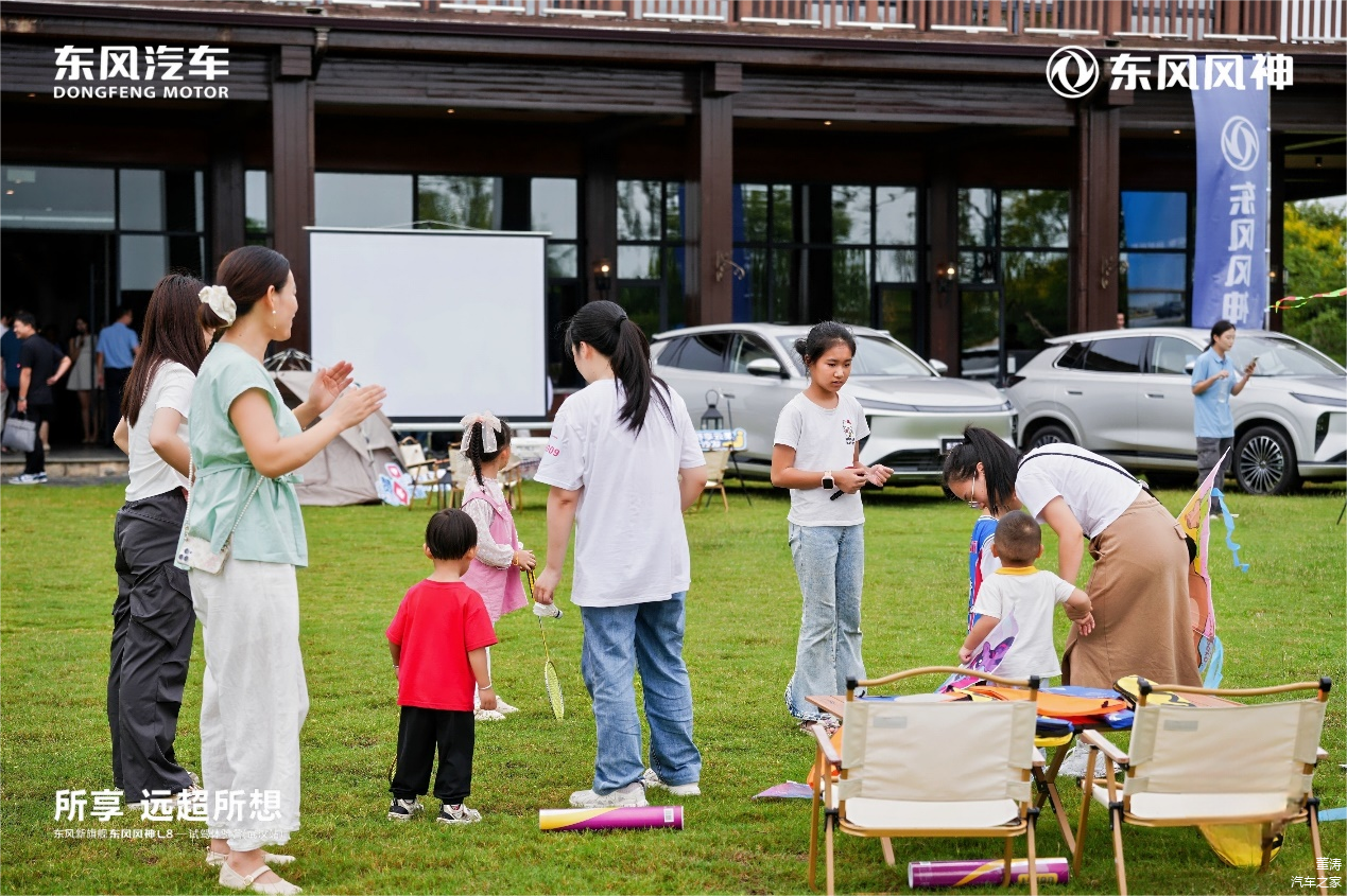 露营场景成为活动亮点,东风风神L8的有着同级领先的6.6kW外放电功能,能够同时为咖啡机、投影仪、户外照明等设备供电,直观感受“移动电站”的实用性。车内后排15.6英寸的高清护眼吸顶大屏与19扬声器WANOS全景声系统打造“移动家庭影院”,后排冷暖箱可随时为饮品保温保冷,航空小桌板则方便放置零食、玩具等物品,将亲子出行的仪式感融入自然场景。