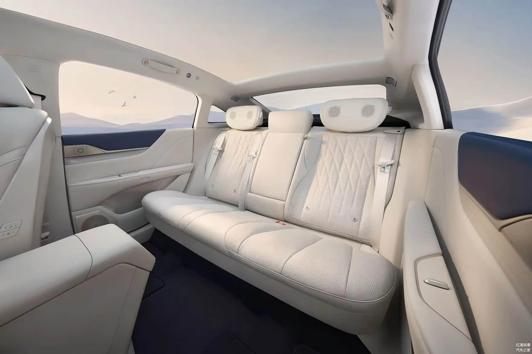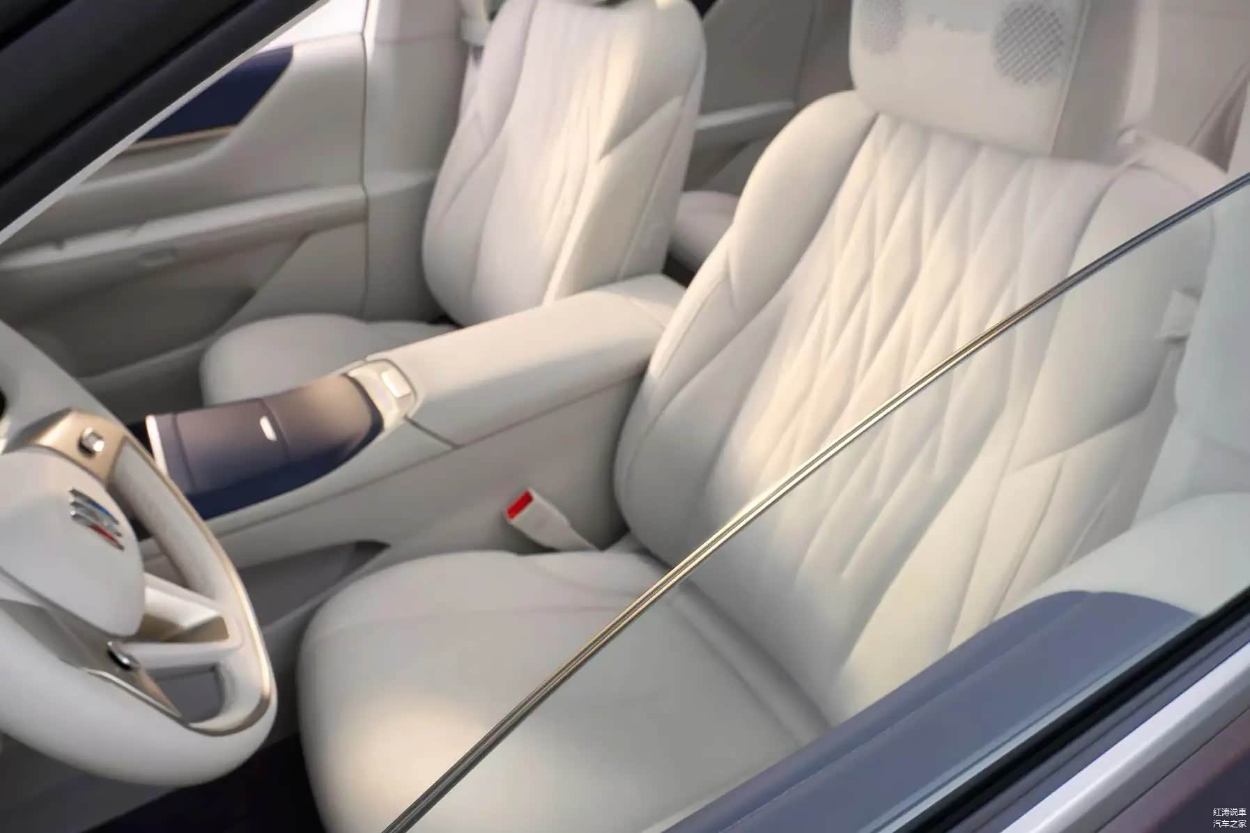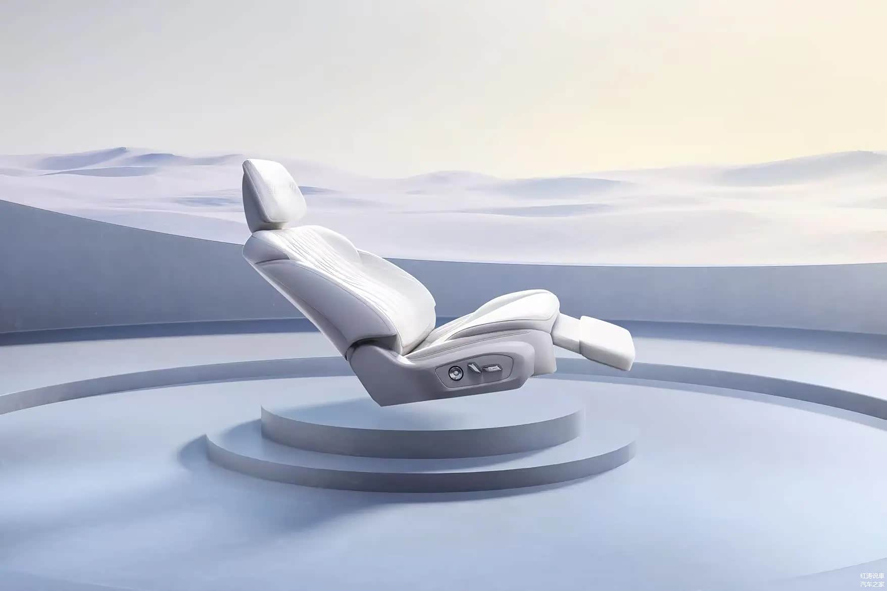 前后排四个座椅为全功能悬浮层座椅,采用Nappa真皮包裹,并且副驾为零重力座椅,提供四向电动腿托,腿托可伸长103毫米,具备语音、屏幕或实体按键三种方式进行控制。