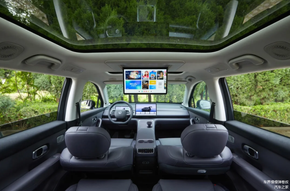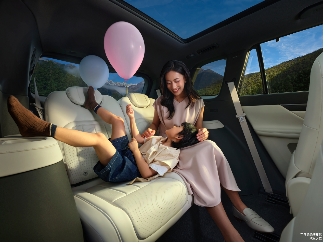 同时,它配备的带遮阳帘的前后排双全景天幕,采光效果也非常出众,既让座舱内部更显明亮通透,也为乘客带来开阔视野,即便身处第三排,也不会有压抑感。64色氛围灯可营造出浪漫又温馨的座舱氛围,正副驾位置的LED美妆镜,便于爱美的女孩子也可以随时整理妆容,第二排的航空小桌板,也为乘客提供了放置物品、处理工作或享用美食的实用平台;6.5L容量的冷暖冰箱,能随时为车上乘员供应冰镇饮品或温热食物,充分适配不同季节的使用需求,主打一个贴心。
