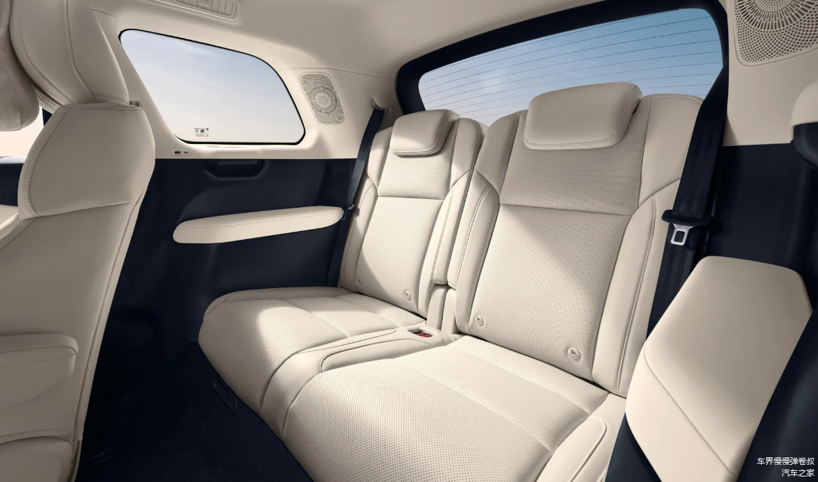 虽然车身尺寸未及东风奕派eπ008那样夸张,但它的第三排空间通过多项精心设计,也同样实现了三排座椅均平权乘坐体验。就拿第三排座椅来说,整体横向宽度、坐垫纵向深度、坐垫厚度、座椅离地台高度、三排脚部空隙高度等均达到同级优秀水平,三排座椅靠背还带有10°调节,两边还增加了超大平滑扶手设计,最大有效宽度120mm,舒适体验这一块还是相当到位的。