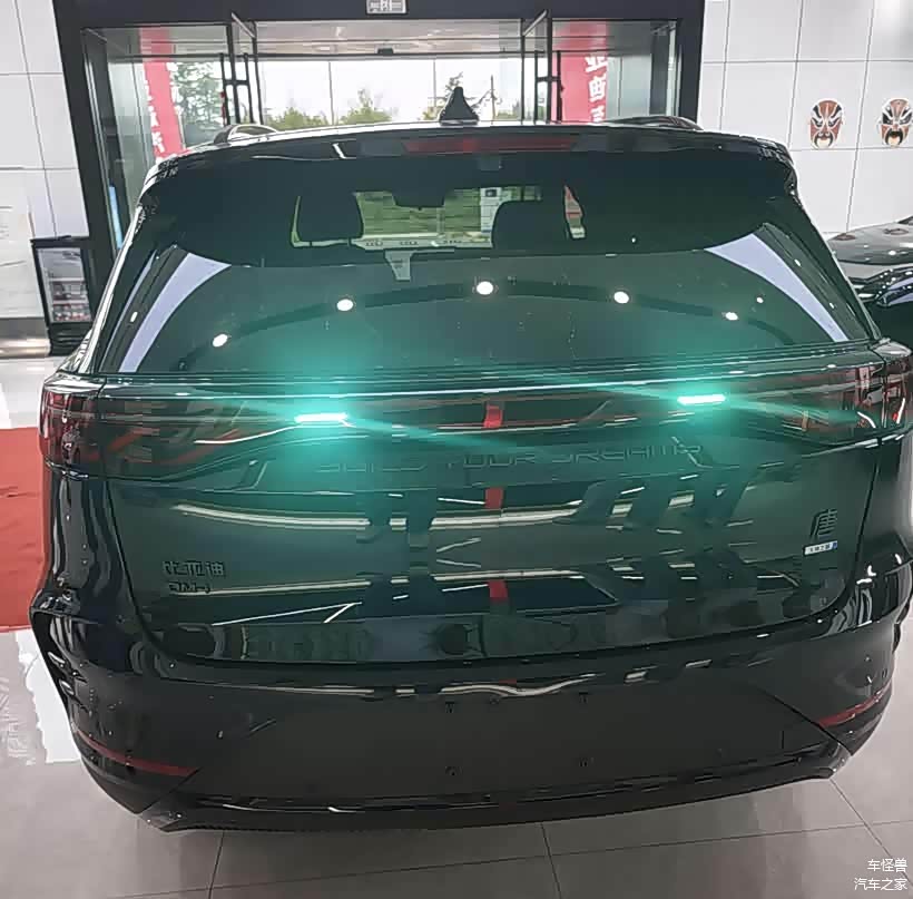 这款新车在保持龙颜美学的基础上,利用"战神版"的同款黑化套件来增强视觉体验。车辆的前部设计了经过熏黑处理的鳞片状格栅,并搭配了矩阵式LED大灯和梯形进气口,从而形成了更加侵略性的车头造型。车辆的侧面设计保持了传统的轮廓,但更换了21英寸的哑光半封闭轮毂,并与黑色车顶行李架和侧裙装饰条相结合,形成了一种低趴的运动姿态。车尾部分进行了升级,采用了聚焦光影系统,并在贯穿式的"中国结"尾灯内嵌了青色光带,与新添加的智驾指示灯联动,使得夜间的辨识度提高了40%。可开启式全景天窗的面积已经扩展到1.2m2,并且通过隐藏式的雨刮设计,成功地将车身的风阻系数降低到了0.31Cd。