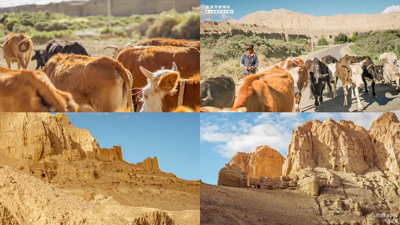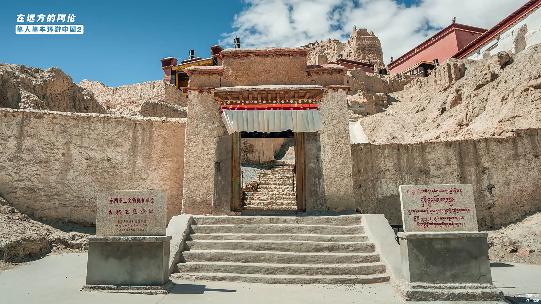 躲过牛羊,跟牧民打了声招呼,路过一个村子,接着往上再走一小段儿弯路,上午11点,我到达了古格王朝遗址
