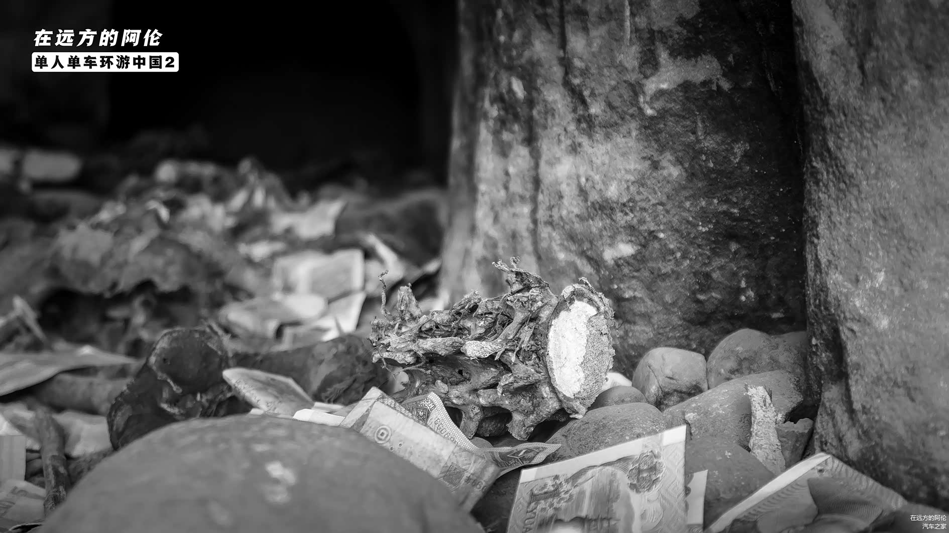 它并不是那种尸体高度腐烂的刺鼻味道,也不是那种冰冷的充满消毒水的味道......我在洞口品了半天算是品出了一些门道:像是那种牛骨被剃肉后涂上酥油,放到阳光底下暴晒十天的味道!