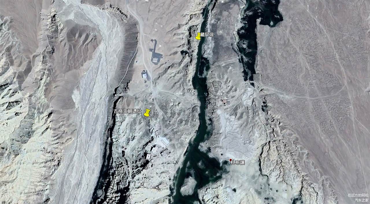 藏尸洞在古格遗址的北面偏东一点,位于河谷崖壁上,那里有栈道可以直接走过去,离古格遗址500米左右。