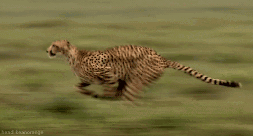 豹子在跳跃奔跑的时候,由于腿部的特殊构造,后腿和尾巴上沿会有比较明显的距离。