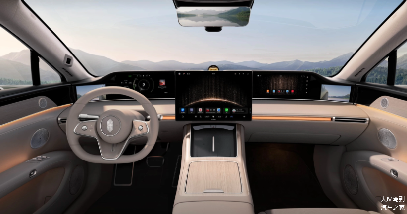 车内设计的也很科技,依旧延续了享界S9的布局,但加了鸿蒙智能座舱4.0。