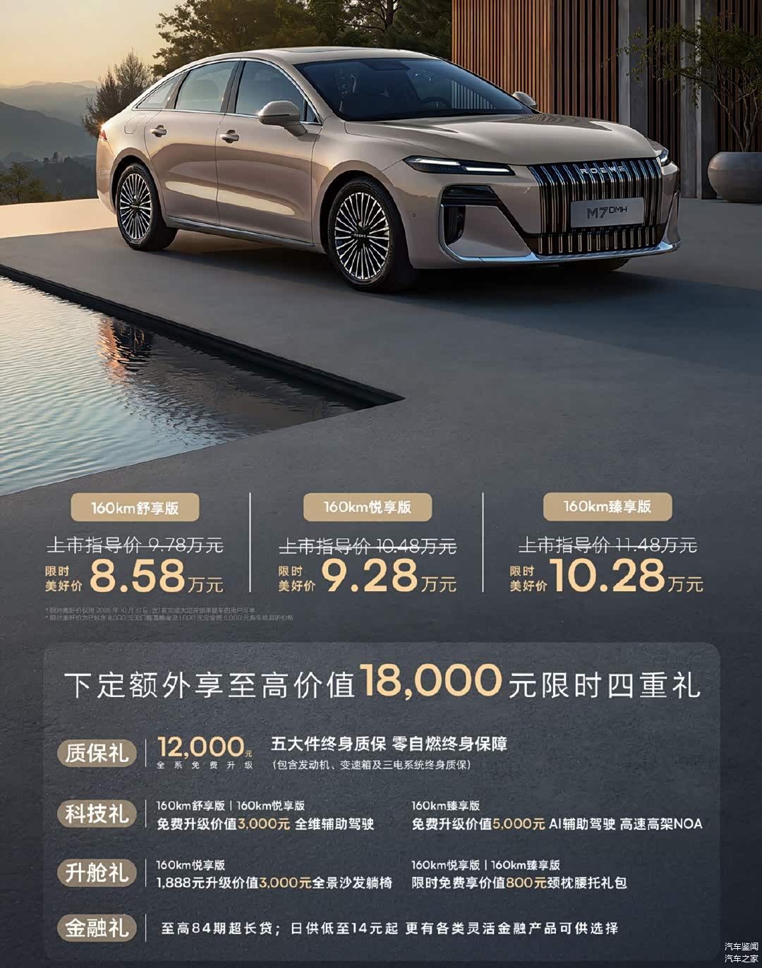 新车上市权益价还下拉到8.58-10.28万元区间,三个版本还都支持全维辅助驾驶,160km臻享版甚至还升级到AI辅助驾驶、高速高架NOA,免费才是真正普及全民辅助驾驶啊!