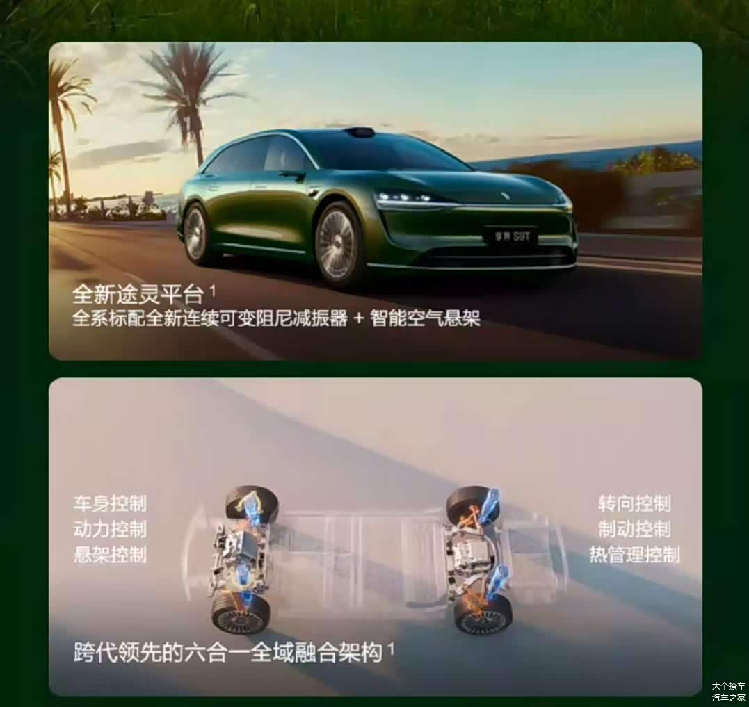 在动力选择上,享界S9T为用户提供了纯电和增程两个选项。在800V平台上,纯电版的CLTC后驱版具有801km的续航能力,而四驱版则为701km。在快速充电的15分钟内,充电效率从30%提升至80%,特别适合需要便捷充电的用户;增程版本配备了1.5T的增程器和单电机,电池版本为53.4kWh,纯电续航为354km,而综合续航为1305km。WLTC的油耗为6.15L/100km,这使得它特别适合那些经常需要长途行驶和充电不便的家庭使用。值得一提的是,这一系列车型都默认配备了智能空气悬挂系统和可调节阻尼减震器,这使得在经过减速带时,其滤震性能相对于普通SUV来说更为优越。