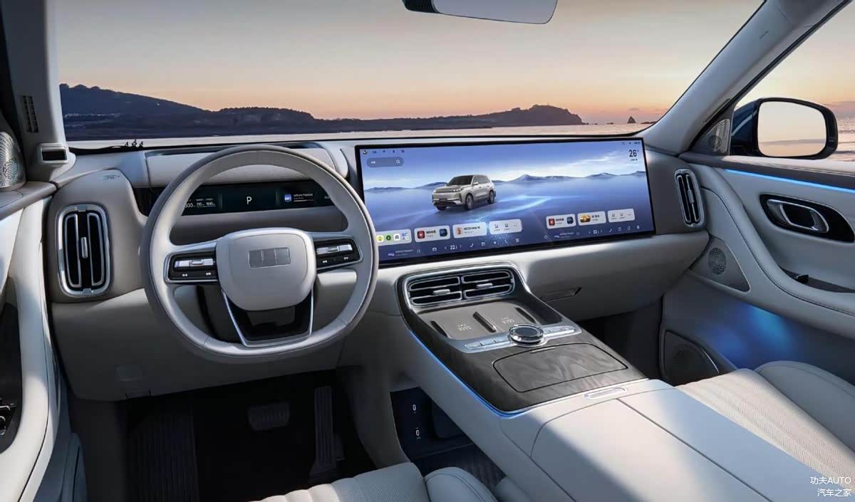 新车内饰采用“三进大宅”理念,三排座椅皆具尊贵感,11层云感SPA座椅搭配石墨烯加热,舒适性极佳。其0.285 Cd超低风阻系数更是同级领先,兼顾节能与续航。