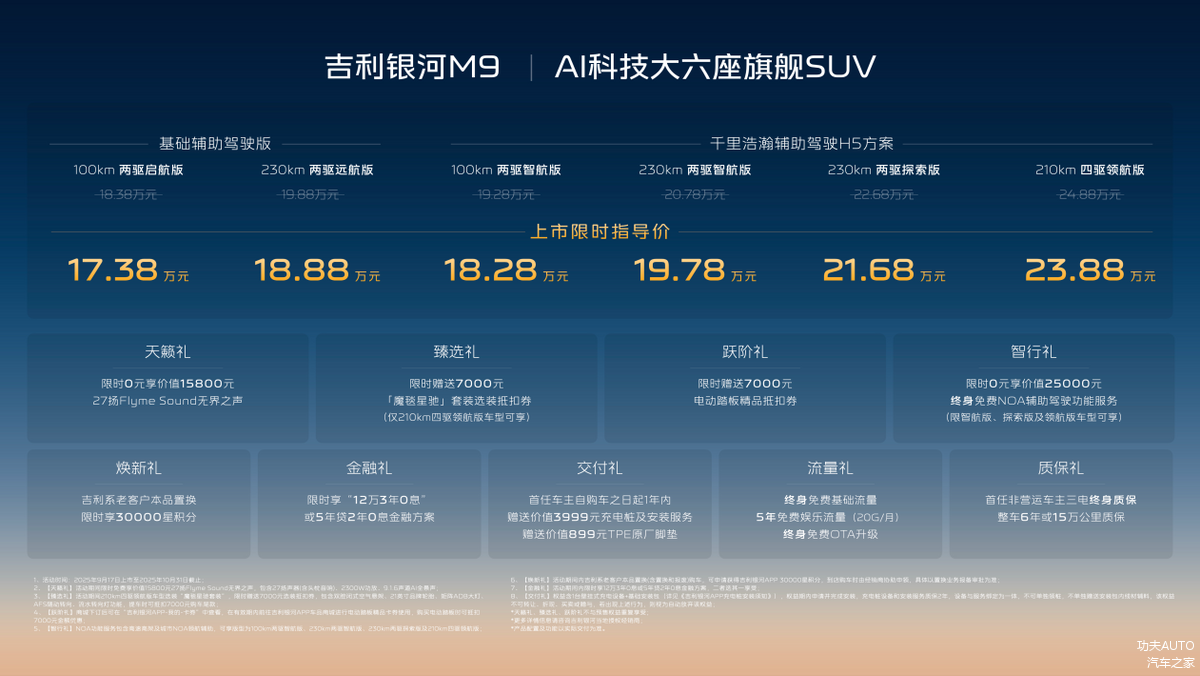 就在近日,吉利银河M9上市,上市限时指导价为17.38万元-23.88万元,还可叠加多重好礼!