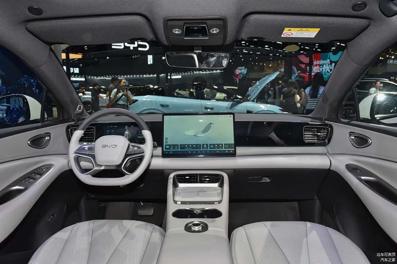 内饰方面,三款车型的布局设计,分别代表着当下比较流行的三种风格。全新深蓝S07采用的是AR-HUD搭配向日葵屏幕的布局,挡风玻璃上有清晰的投影,中控屏幕可以上下左右摆动,所以给人的科技感很强,标配的8295P芯片,也是同级很顶的。细节用料方面,全新豪华游艇设计,手能摸到的地方,几乎都有超纤绒感麂皮或者软包覆盖,内饰还新增了暮烟紫配色,豪华感很强,可玩性和提供的情绪价值给得比较到位,所以和外观一样,对于年轻消费者来说,它的吸引力相当大。