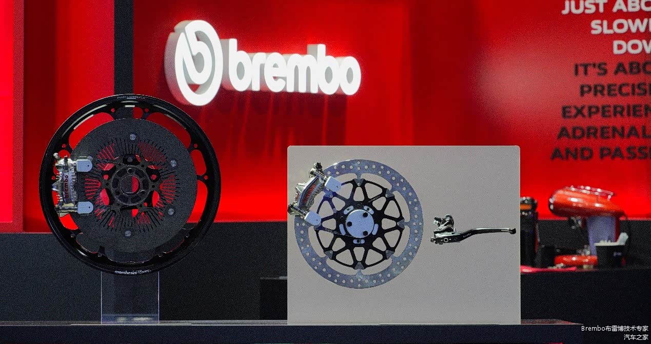 本次博览会,布雷博响应中国市场的摩托车运动热潮,打造专属的运动解决方案展示区,隆重展示了涵盖2025款MotoGP制动卡钳、T-Drive翅片制动盘的2025赛季MotoGP整体制动解决方案,以及基于MotoGP领先技术打造的RCS短行程RR制动主缸。